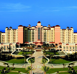 The property includes 2 championship golf courses, a water park and a marina offering equipment rentals and cruises. There’s a full-service spa, a fitness center and a kids camp. There’s also a range of dining options, including a casual poolside cafe, an intimate sushi bar and an oceanfront seafood restaurant.